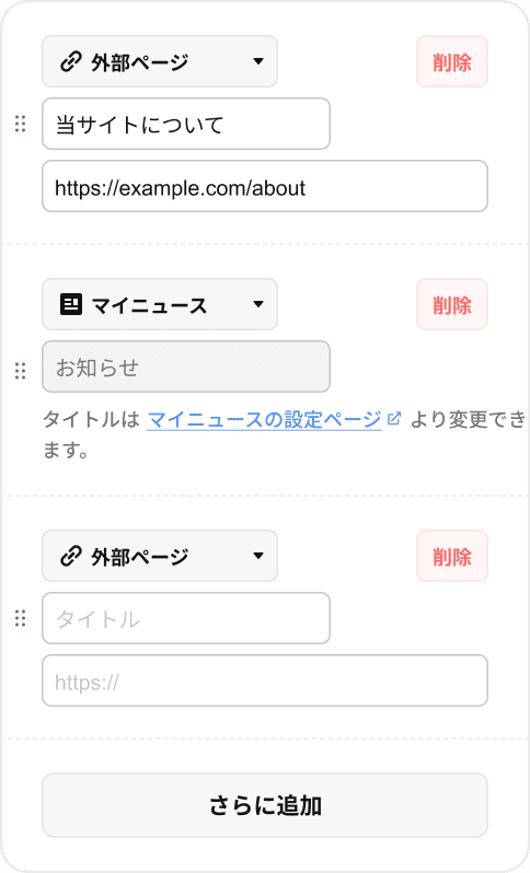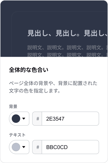 - 配色のカスタマイズ自由な文字の配置ナビゲーションのカスタマイズ